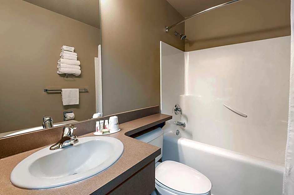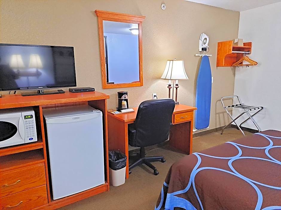This spacious room offers a flat-screen cable TV with DVD player. A large work desk is also included. A microwave, full-sized refrigerator, and coffee machine are offered.